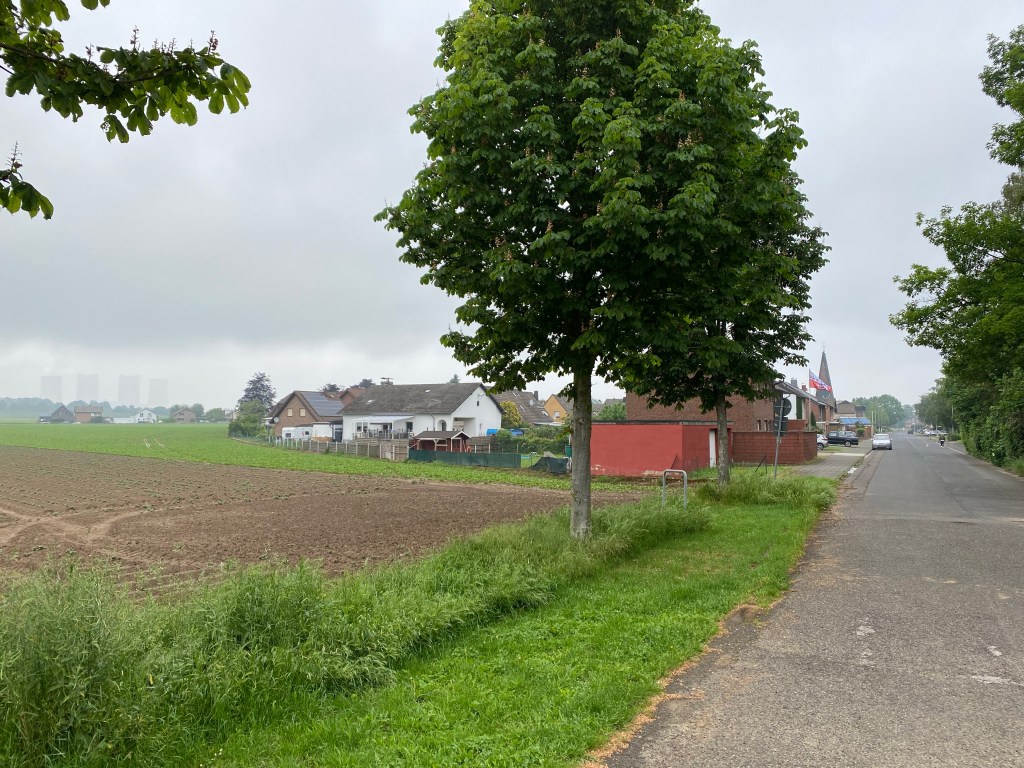 Wie sang bereits der großartige Ausnahme-Entertainer Peter Alexander? „Aus der Ferne…“ Ja, aus der Ferne wird vieles schöner. Vieles. Nicht alles! Wir verlassen Rath kurzzeitig und werfen nach dem obsoleten Besuch der örtlichen Ruhestätte einen Blick zurück. Oft hat so ein Ortseingang mitsam Panoramasicht ja etwas magisches. Oft. Nicht immer.