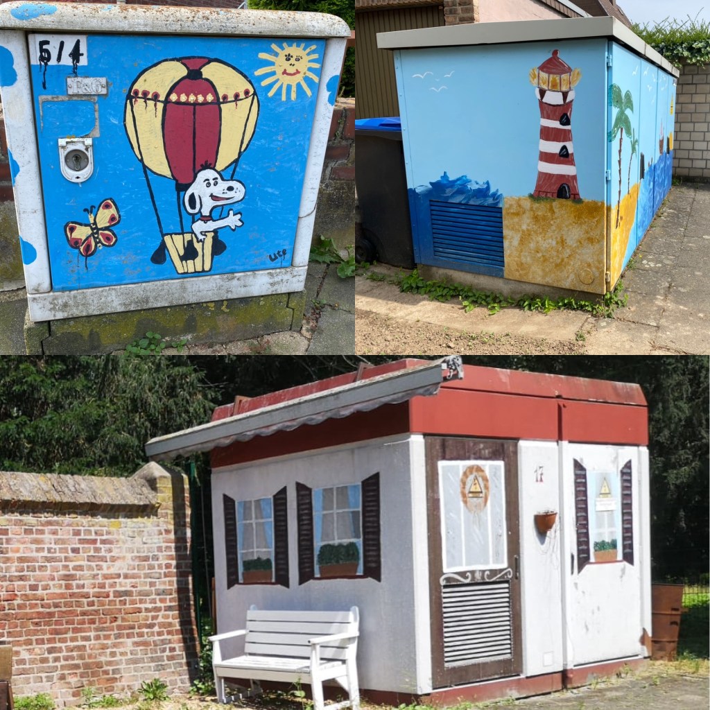 Apropos Ordnung: Während andere Gemarkungen in der Region ihre grauweißen Stromkästen ohne jegliche kunstvolle Verzierungen im Stadtbild anrotten lassen, ist man in Paffendorf einen Schritt weiter. Egal, ob Kunstprojekt der örtlichen Schule oder Wiedereingliederungsverfahren unter Bewährungshelferaussicht: Das gibt dem Ort einen bunten Anstrich. Das und natürlich auch die orchideenberankten Fenster, die ja scheinbar, wie wir nun wissen, Pflicht in deutschen Fenstern zu sein scheinen.