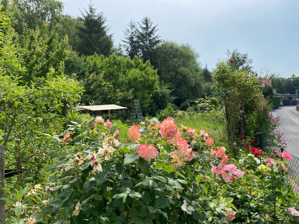 Unser Weg führt uns weiter zum nördlichen Ortsausgang und wir stellen fest, dass trotz Klimawandels bei uns noch lange nicht alles wächst und gedeiht, was Gottes grüne Hand gegeben hat. Ab und an müssen Pflanzen scheinbar doch gegossen werden. Wie gut, dass Orchideenarrangements nicht in Steingärten wachsen, sondern nur hinter gut verschlossenen windowcolourverfeinerten Fenstern.