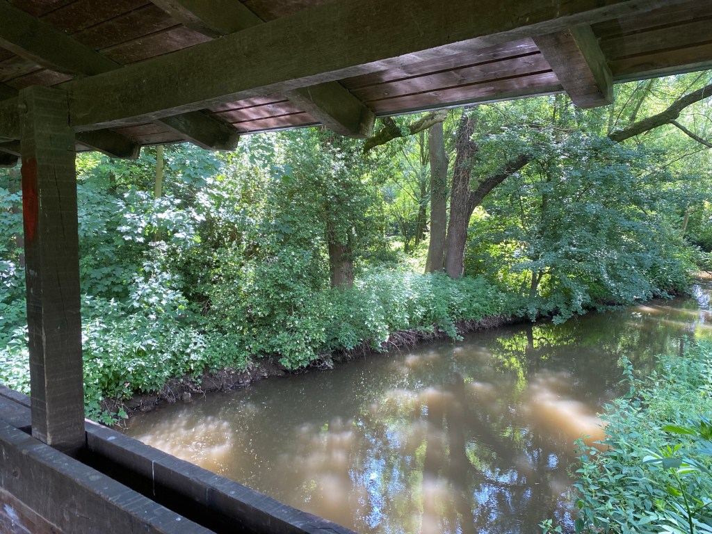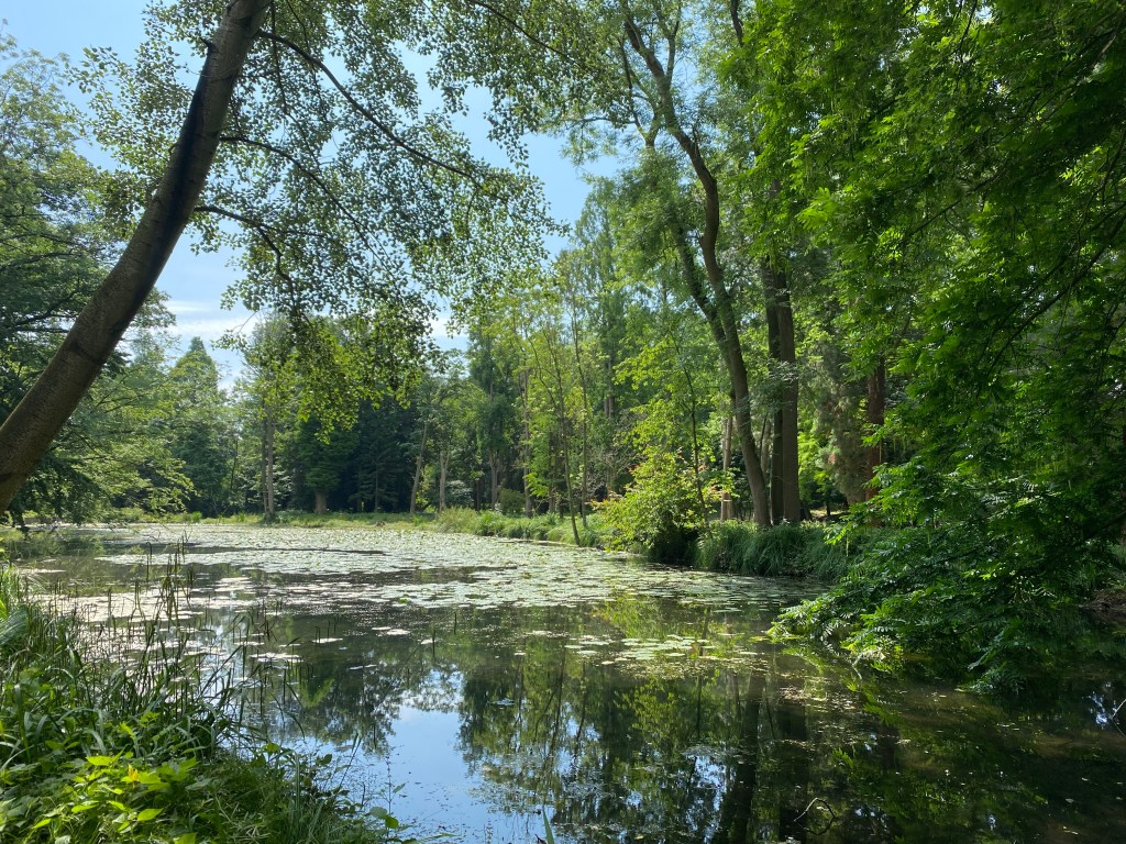 Der Schlosspark wartet dann mit viel Wasser und bemerkenswerten Bäumen auf. Wo sonst findet man Mammutbäume, Gingkos oder auch millionenjahre alte Sequoia-Stämme in der Region?!