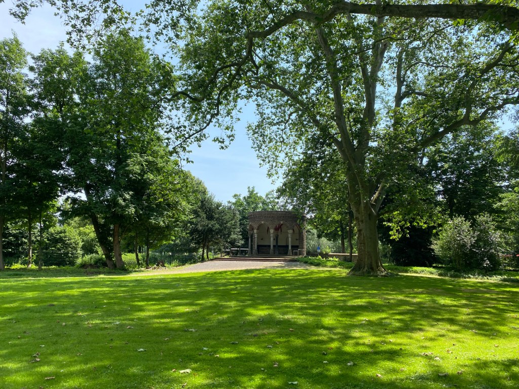 Ebenso fast nirgends anders findet man so viele Menschen, die meinen ihren Kaminsims zu Hause mit Hochzeitsfotos aus eben diesem Park verschönern zu müssen. Ich glaube, es gibt keinen anderen Park, vielleicht abgesehen vom Schlosspark Brühl, in dem so viele teils sehr ungelenke und steife Hochzeitsbilder geschossen wurden und werden wie hier. Das kann aber auch sehr heiter sein, wenn man sich unweit des Rondells platziert und fotowillige Pärchen mit nervösen Hochzeitsfotografen (m/w/d) beobachtet