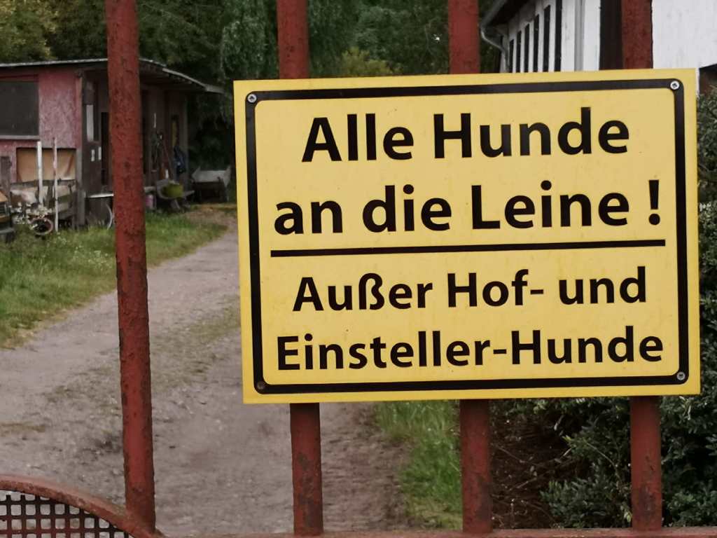 Nach kurzer Zeit gelangen wir zu den Anlagen der Gold-Kraemer-Stiftung. Deren Gründer*innen Paul R. und Katharina Kraemer haben sich zu Lebzeiten sehr für Menschen mit geistiger und körperlicher Behinderung eingesetzt und Kindergärten, Schulen, Wohnheime und therapeutische Einrichtungen im Rhein-Erft-Kreis ins Leben gerufen. Dafür gebührt Ihnen Dank und Respekt. Die Verwahrlosung, die rund um das gesamte Grundstück um sich greift, irritiert uns allerdings ebenso sehr, wie das ein oder andere Schild.
