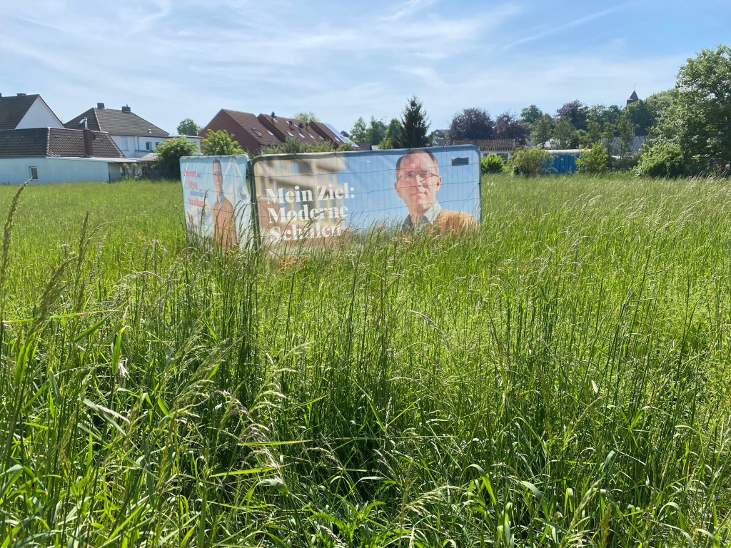 Menschen ohne Orientierungssinn sind in Millendorf gut aufgehoben und lernen sich schnell zurecht zu finden, denn die anfangs erwähnte Erkelenzer Straße ist zugleich (eigentlich) der einzige befestigte Weg – wenn man den Autobahnzubringer zur A61 mal nicht mitrechnet. Wo es am schönsten ist, da soll man gehen und so beschließen wir den fordernden Weg ins benachbarte Lipp zu beschreiten. Fordernd weniger des minimalen Höhenunterschieds wegen, als vielmehr der teils gewagten Plakate zur NRW-Landtagswahl wegen, die äußerst geschickt im hohen Gras platziert wurden. Besser könnten sich Pokémon dort auch nicht verstecken.