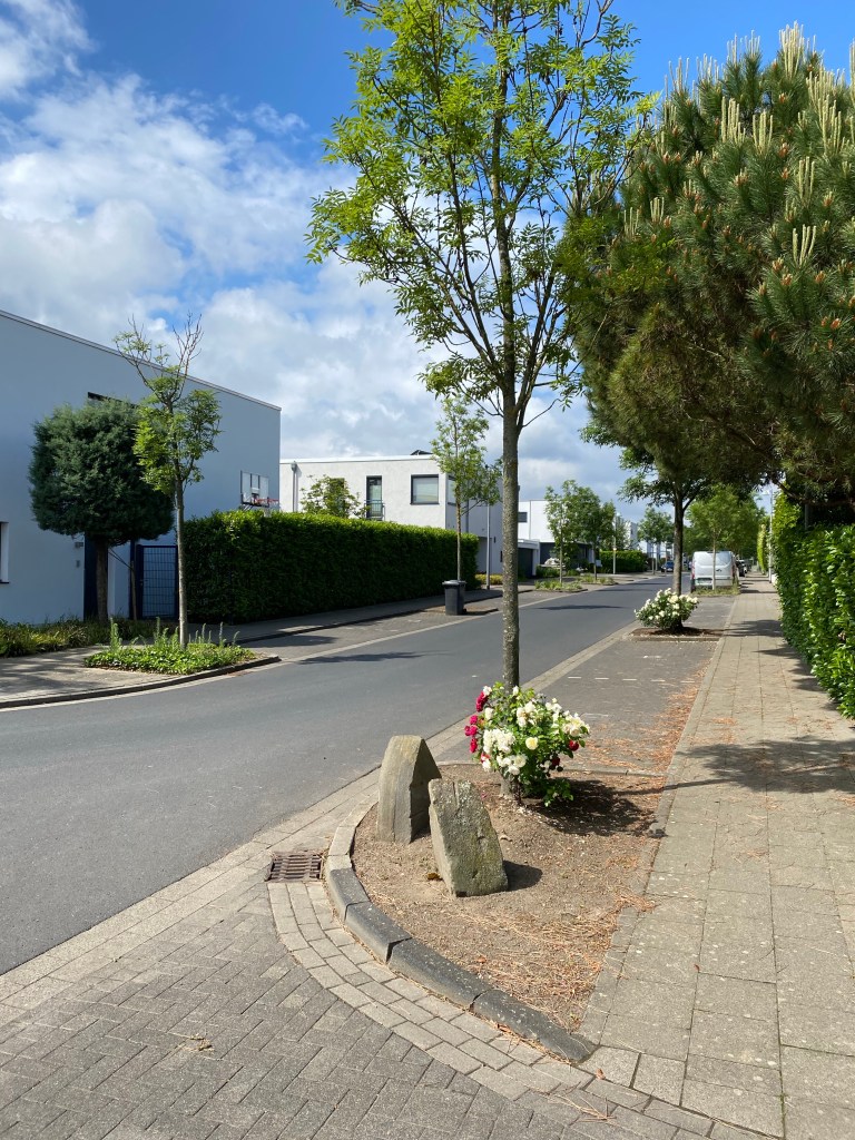 In dem wirren Konglomerat aus Straßen, Wegen, Gehwegen, Sackgassen, Einbahnstraßen, spontanen Sackgassen und Pollern ist es auch eine Herausforderung einen angemessenen Parkplatz zu finden, den man auch als solchen erkennen kann. Wir erhaschen tatsächlich einen an der Overbeckstraße. Ein Straßenname, der uns an eine signifikant unsympathische und unfähige Deutschlehrerin aus längst vergangenen Zeiten erinnert. Leider findet sich nirgends sonst eine Möglichkeit unseren Bus abzustellen. Unweit des Parkplatzes entdecken wir dann aber etwas, das wir bislang im Rhein-Erft-Kreis so nicht vorgefunden haben (mieses Clickbait – mehr unterhalb des nächsten Bildes).