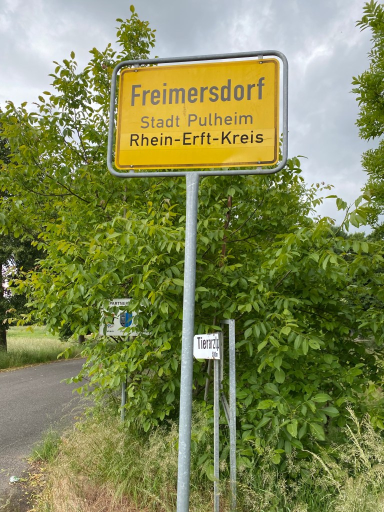 Spontan und jugendlich-frisch wie wir sind, kommen wir auf die verrückte Idee einfach mal Neu-Freimersdorf hinter uns zu lassen und den Original-Ort zu besuchen. Während insbesondere im Rhein-Erft-Kreis viele Ortschaften das Wort „Neu“ schmückt nachdem der namensgebende Ort im Zuge einer exzessiven Braunkohlebewirtschaftung von der Landkarte verschwinden musste (Etzweiler-Neu, Manheim-Neu, Neu-Bottenbroich etc.) ist dies im Falle Freimersdorf ganz anders.