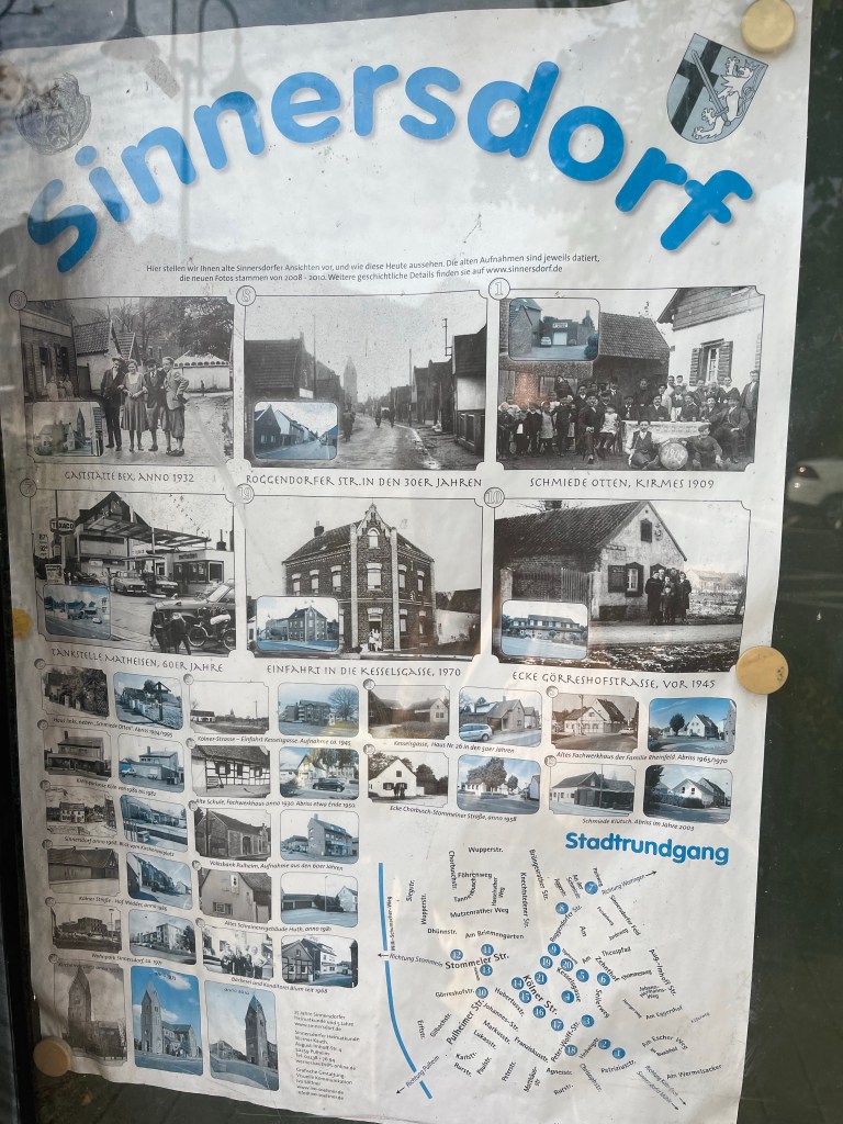Auch an uns Ortsfremde hat man im Pulheimer-Ortsteil gedacht. Wie oft ist man als Tourist in fremden Gefilden unterwegs, hat seinen „lonely planet Pulheim“ nicht zur Hand und irrt orientierungslos durch die Gegend?! Wir alle kennen das. Damit man sich in Sinnersdorf nicht in die dunklen Ecken verirrt und von brandschatzenden Vasallen heimgesucht wird, hat man einen herrlichen Stadtrundgangsvorschlag erarbeitet und vor vielen Dekaden veröffentlicht. Doch: Schönes bleibt: