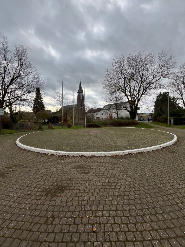 Dieser zentrale Platz im 3000-Seelen-Ort bietet neben einem versiegten Brunnen der Kategorie „Stahlschrott hochgestapelt“ einen Kinderspielplatz und ein, sagen wir mal, Rondell. Da während unserer Visite niemand vor Ort zugegen war, ließ sich nicht abschließend klären, ob dieser erhöhte Kreis als Bühne für das sonntägliche Platzkonzert des „Tuba Clubs Rotbach“ gedacht ist oder als Stätte für die samstäglichen äußerst beliebten Hexenverbrennungen.