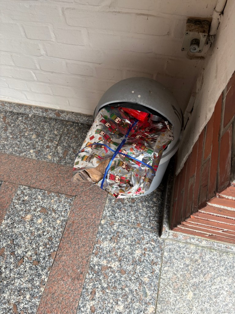 Was uns auch noch aufgefallen ist und wofür wie auch keine Erklärung haben (so wie für die Fragen weshalb Menschen ihren Unrat scheinbar einfach aus dem Fenster werfen und die Bäume scheinbar „Bar Mitzwa“ feiern mussten) sind die im Ort herumliegenden Geschenke. Auch zwei Wochen nach Weihnachten fliegen sie, minder-liebevoll verpackt, durchs Dorf. Entweder hat Santa sie über Broich einfach achtlos abgeworfen, frei nach dem „Mir doch egal“-Motto oder selbst beim Schrottwichteln waren sie den örtlichen Berbern zu hässlich. Andere Erklärungen kommen einfach nicht in Frage. Der Osterhase wird sich in ein paar Wochen wundern…